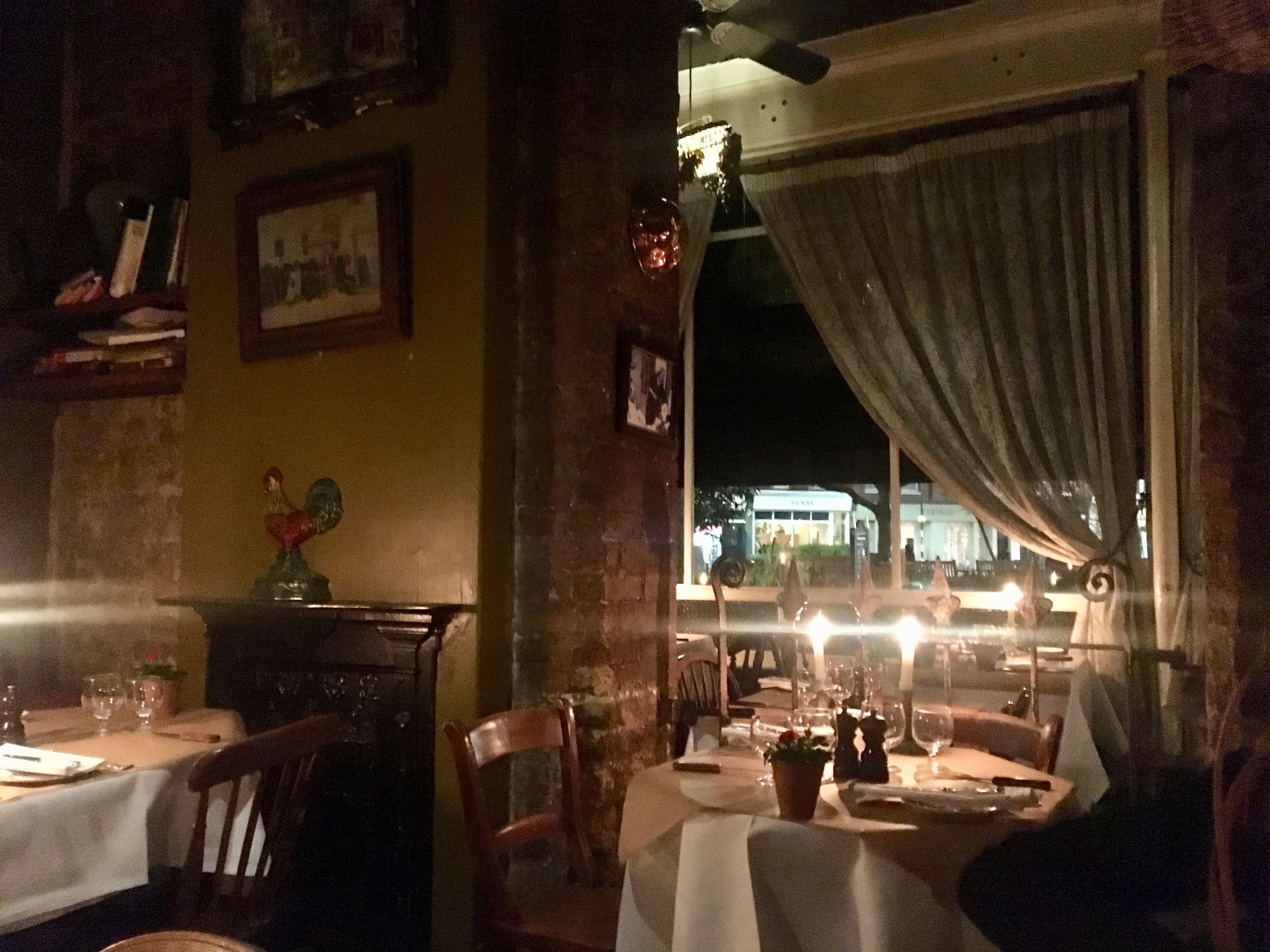 I felt as if I’d been somehow transported into old France: the terracotta jugs and old world dishes, the traditional lace curtains, the paintings on the wall, the long and tall white candles at the table in the style that is hardly seen anymore. The place has a bit of a nostalgic farmhouse kind of feel, like a French countryside location. It was absolutely charming, and quintessentially romantic -but not in the over-the-top, flashy way. No, this is romantic in a soft, cozy, familiar way. It is a perfect date venue; my photos don’t do it justice.
