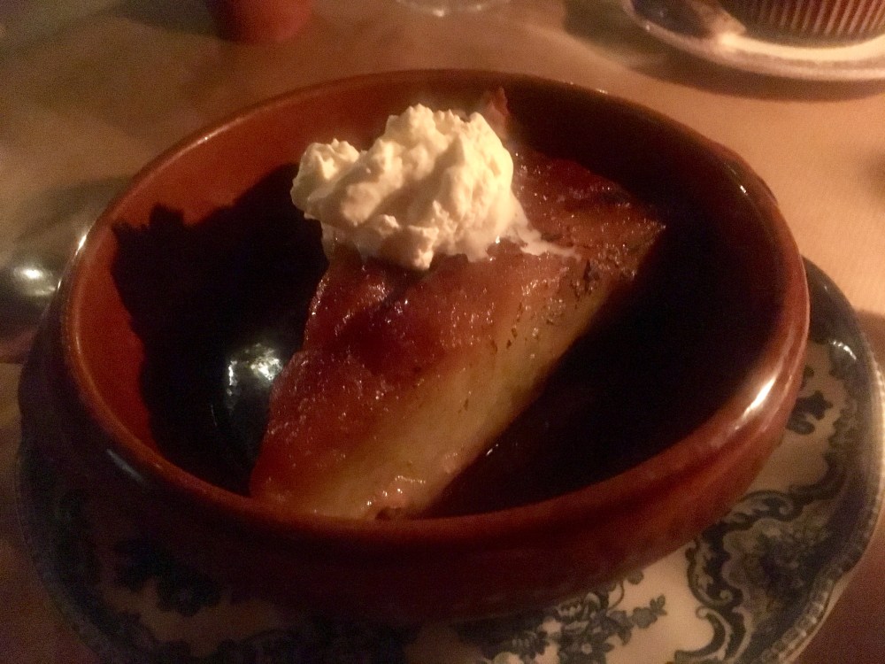 Their attentive service really came to light when it came to the dessert: I had ordered a creme brule’ because, when a creme brule’ is done well, it is heavenly and if I had any chance of seeing it done well it would be here. When it arrived, I was sorely disappointed to see it served cold and, very obviously, straight from the refrigerator. They offered to warm it up with the torch, but then naturally, it didn’t have that sugar coating that cracks when you break into it. Seeing my disappointment, they very kindly – and of their own accord – offered to replace it with any other dessert on the menu. Feeling embarrassed about the fuss, they kindly assured me it wasn’t a problem and so I ordered another classic: tarte tatin.