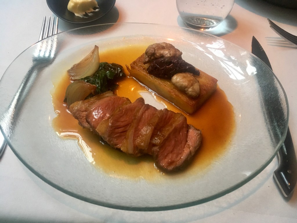 My appetiser of choice was the duck egg tart, with red wine sauce, turnip puree, lardons and sauteed duck heart. It is a special kind of pleasure to break that duck egg yolk so that its golden gooeyness envelops the saltiness, smokiness and creaminess of the rest of the dish. The combination is a gastronomic treasure; it’s such a lovely start to the dinner.