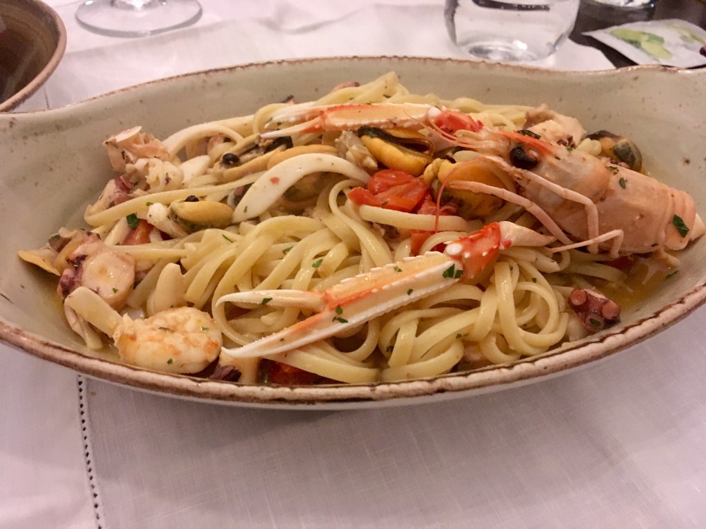 When it came to the main dish, Gianluca himself advised me both nights. The first time, I combined the freshly made pasta from one dish with the toppings of another dish, and had the scialatielli pasta with mixed seafood and a lemon sauce. After all, when you’re on the island of lemons, what more obvious combination could there be? The scialatelli very much tasted homemade which was lovely… and the seafood? Deliciously fresh, of course! The lemon gave the dish a refreshing and deceptively light feeling while you were eating… of course the portion was so large you didn’t feel quite so light after – but it was too good to regret.