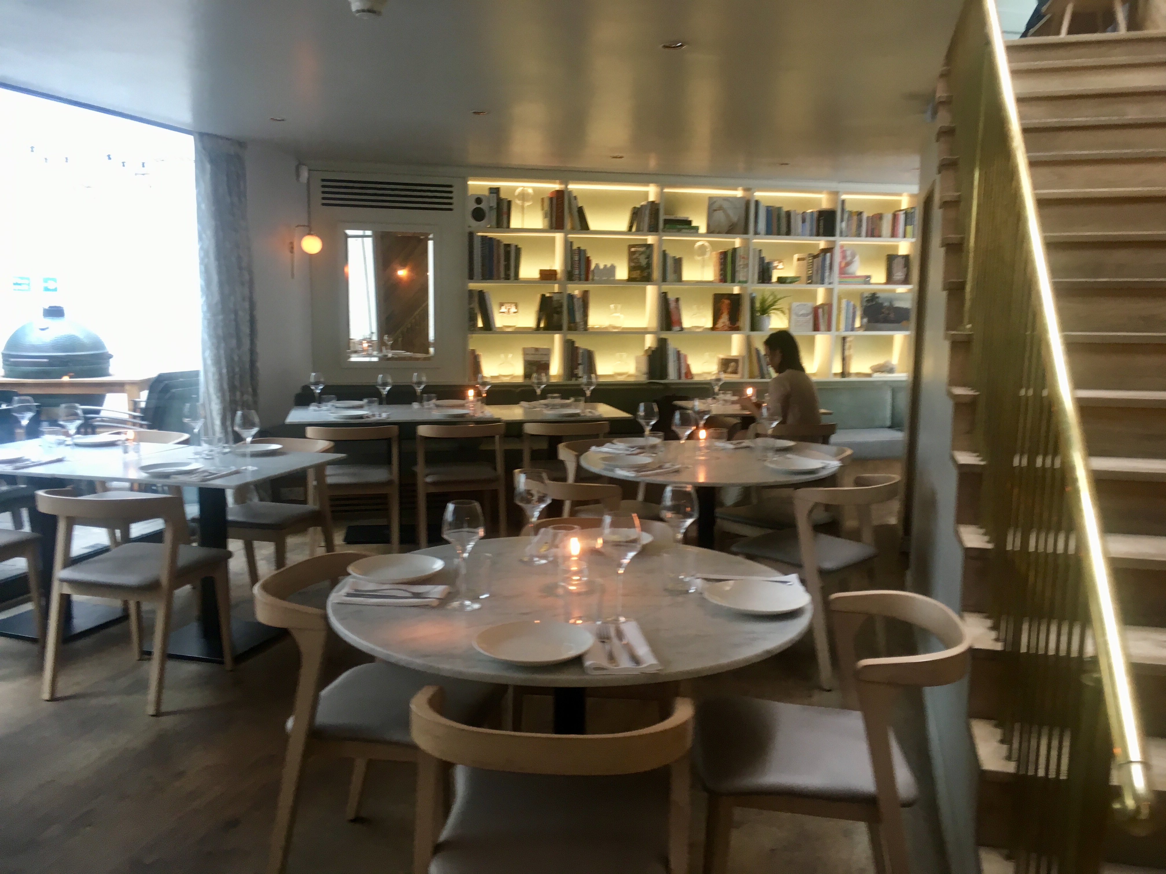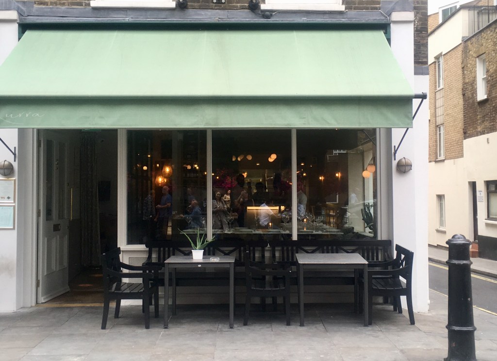 We arrived to find a darling little restaurant on a street corner with tables out front, as well as tables inside and in a back garden, which provides an extensive amount of choice to suit your mood and the temperature. I quite appreciated the muted colours, soft backlighting against the wall, and the minimalist decor and table setting: while we may have arrived a bit early, the restaurant felt nonetheless a calming oasis, which is a rare thing in central London.