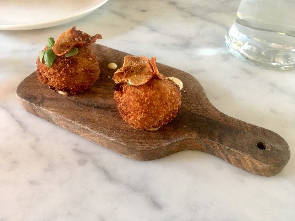 The first to come out – and rather promptly, thankfully – were the suckling pig croquetas. They were beautifully served on a wooden board, those two golden balls of deliciousness. Crispy on the outside, soft and delicate in the middle, they were cooked to perfection and tasted so full of flavour all while feeling seemingly light. As far as croquetas go, this was among the best I’ve had.