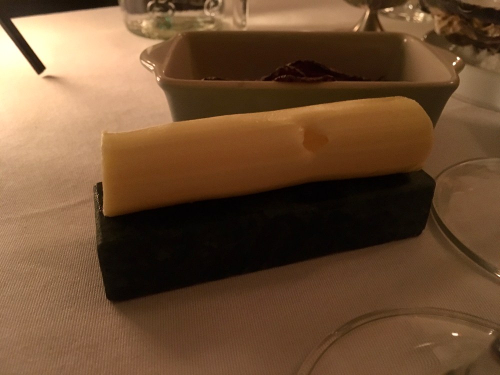 But we were famished, and ordered nibbles before our starter, which consisted of the delicate Violetta crisps, well-named given their purple colour, and a treat I hadn’t enjoyed for some time: Irish Carlingford Oysters with lemon and dill. They had a beautiful flavour and I quite appreciated that they weren’t served with some variation of a hot sauce which seems all too common these days.