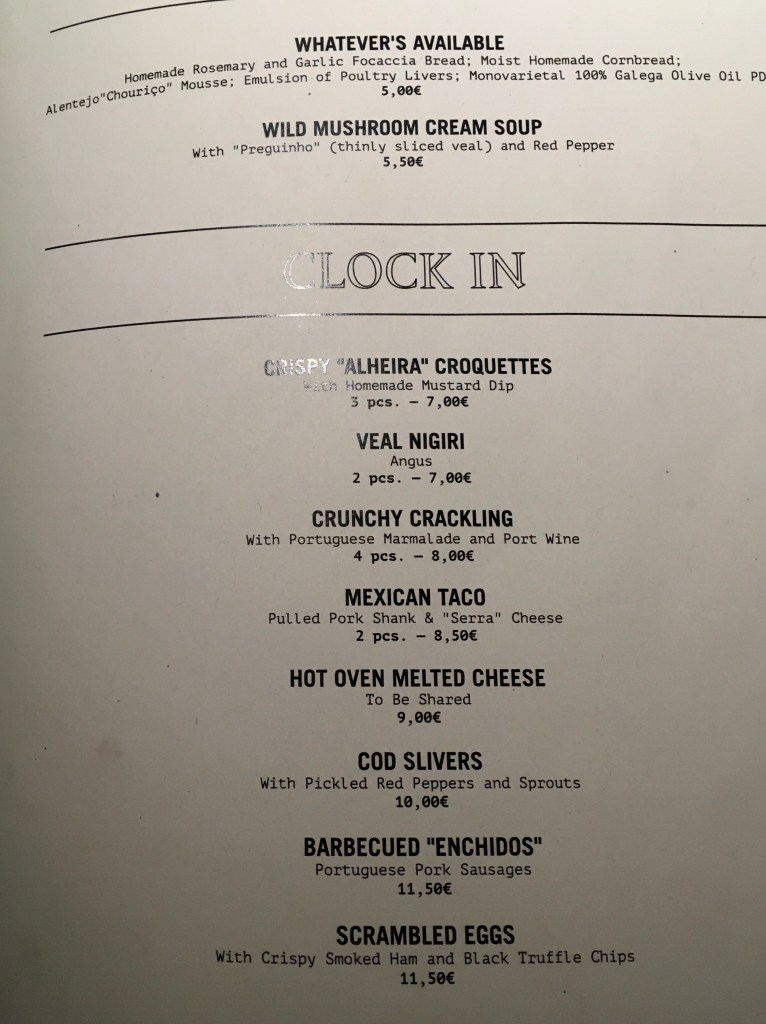 Upon arrival, we thought we had found a bar rather than a restaurant, because that’s the first thing you see; the restaurant is tucked away at the back. We were seated and offered a drink of Portuguese champagne while we waited for our table. I didn’t even know Portugal made champagne, but regardless what the French may think of me, it was rather good!